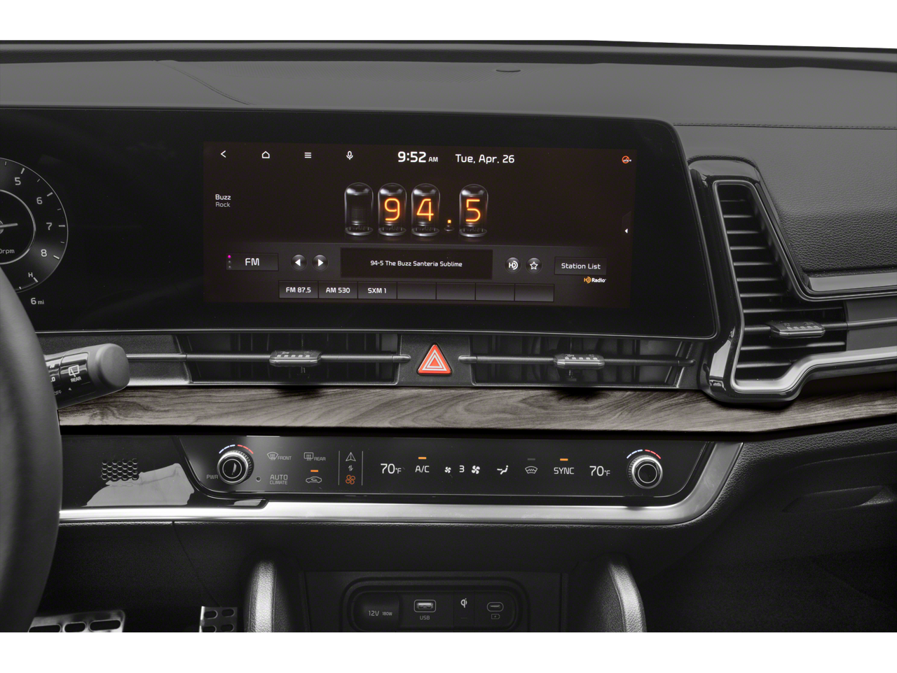 - Radio: AM/FM/HD Audio System -inc: 12.3" touchscreen w/navigation, 8 speakers including subwoofer, 400 W w/HALOsonic harman/kardon sound system, wired Apple Carplay and Android Auto, UVO telematics, voice recognition, SiriusXM, steering wheel mounted audio controls and Bluetooth® phone and streaming audio